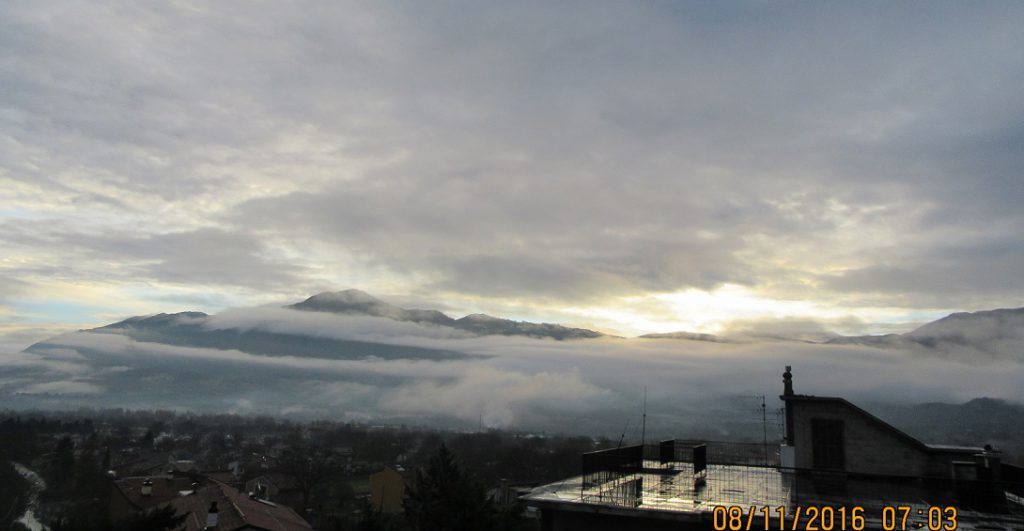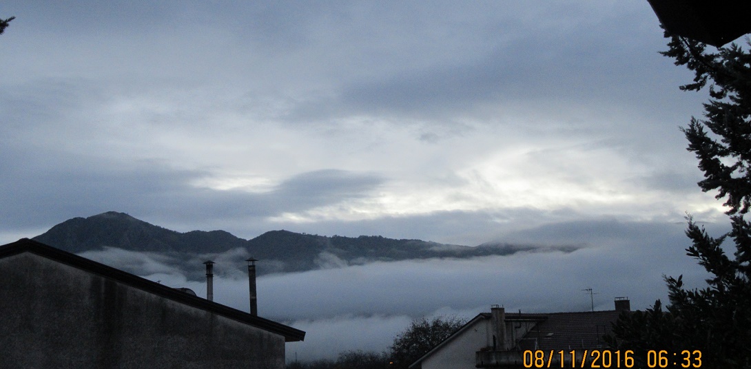 Purtroppo gli eventi metereologici degli ultimi giorni non hanno permesso di fissare un’ALBA perfettamente ubicata su Colle MOLELLA del mitico PANTANI che scollinava verso CHIANIZZI e,quindi, nella discesa che porta al PIANORO Tettono-Carsico del LagoLACENO. Questo non mi ha impedito, però, di fissare momenti aurorali, di qualche effetto, sul primo crinale occidentale del Massiccio del CERVIALTO, alle cui falde pedemontane, sul solido terrazzo breccioso, risulta felicemente ubicato il BORGO antico di BAGNOLI Irpino.