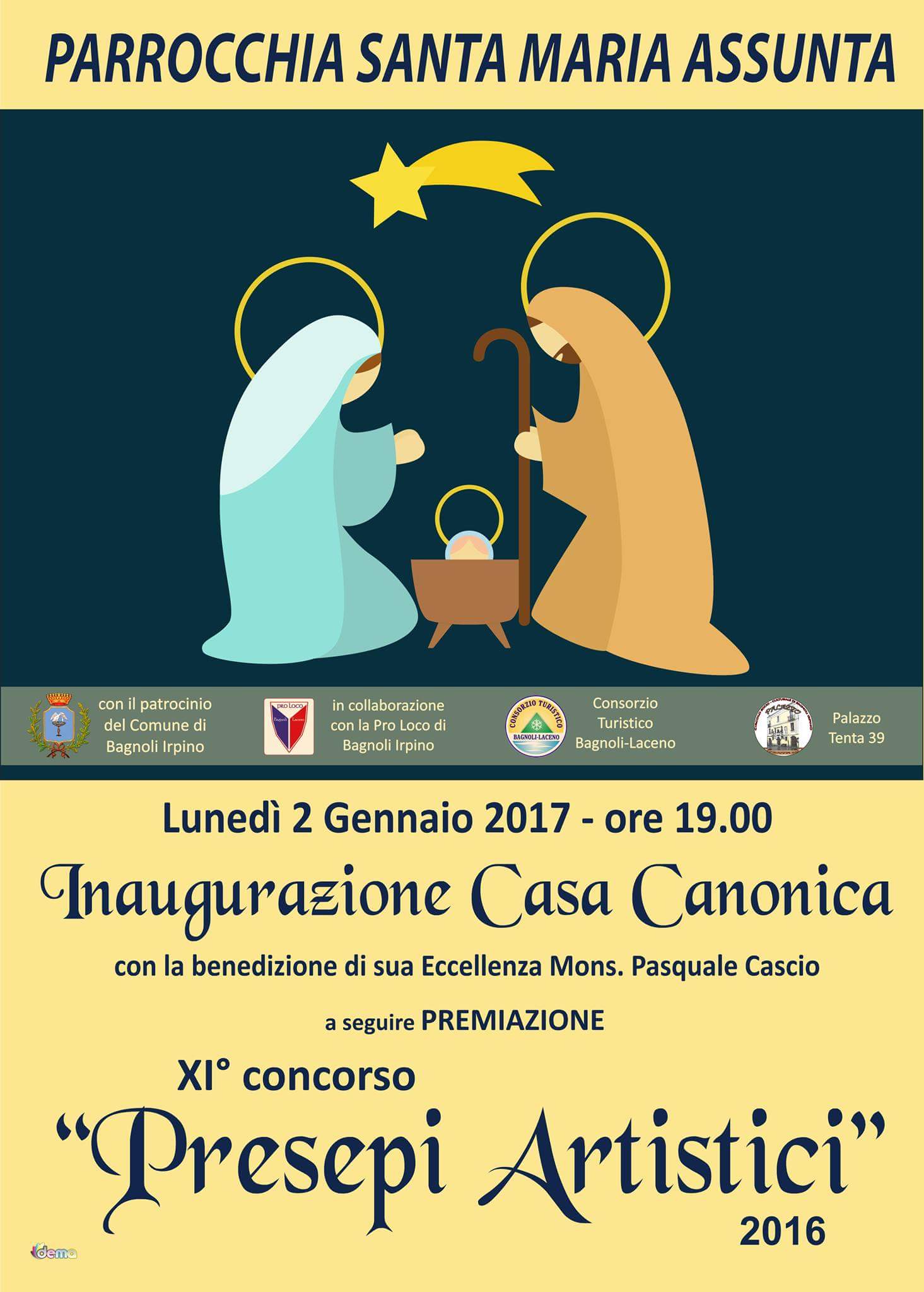 La Parrocchia Santa Maria Assunta di Bagnoli Irpino è lieta di comunicare che lunedì 2 gennaio 2017 alle ore 19:00 verrà inaugurata la nuova sede della Casa Canonica sita in Piazza Fratelli Rosselli.