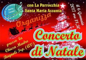 La Schola Musical Cantorum “la Bagnolesina”, in collaborazione con la parrocchia Santa Maria Assunta, organizza il “Concerto di Natale”. La kermesse è in programma per domani 6 Gennaio (festività dell’Epifania) presso la chiesa Madre di Bagnoli Irpino, con inizio dalle ore 18,30.