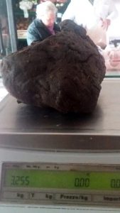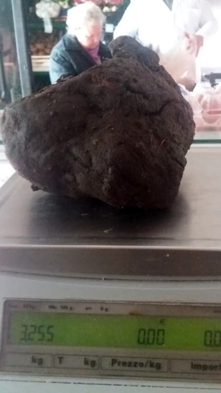 Quando si sono accorti della grandezza, sono rimasti per un po’ meravigliati. Il primo gesto istintivo è stato avvertire i familiari per dare la notizia della gradita scoperta. Portato a casa, i primi controlli e la conferma di quanto aveva già immaginato: un tartufo dei record pesato con una bilancia di precisione in macelleria ed il display ha segnato 3,255 kg di bontà.
