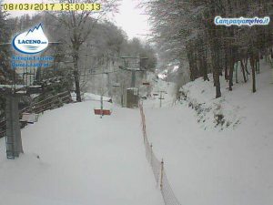 Marzo sugli sci sull’Altopiano del Laceno a partire da giovedi 9 marzo. La neve caduta nelle ultime ore ha consentito la battitura delle piste. Sulla vetta Raiamagra la coltre bianca ha raggiunto circa il metro. All’intermedia si registrano 40 cm, mentre alla base il panorama è imbiancato ma non consente nessun tipo di attività sportiva.