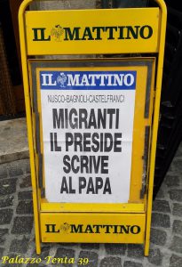 Ho scritto ai Sindaci dei tre comuni in cui ricadono le mie scuole, proponendo loro di dare la disponibilità ad accogliere queste persone. Mi hanno risposto di no, tutti e tre. E’ triste, ma devi sapere, caro Papa Francesco, che la gente consultata dai tre sindaci è composta in gran parte da persone (tu le chiameresti “sepolcri imbiancati”) che, la domenica mattina, si imbellettano e vanno in Chiesa, ad ascoltare la parola del Signore».