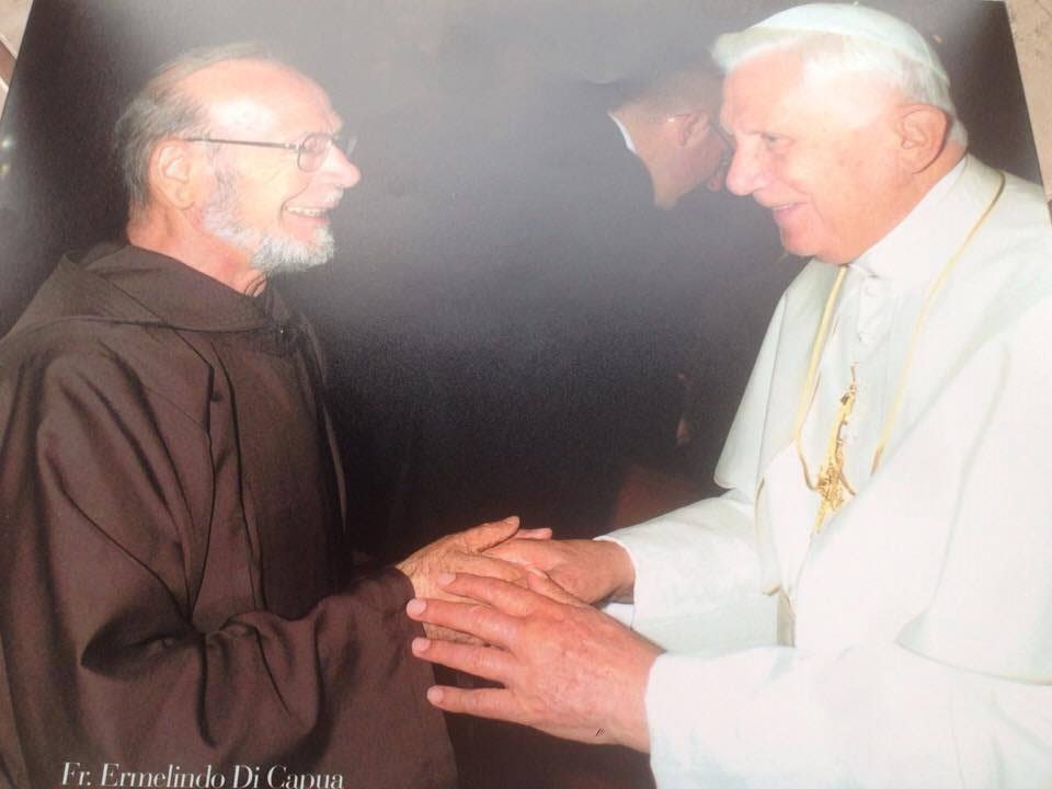 Padre-Ermelindo-2Pochi giorni fa, Padre Ermelindo si è spento ed è salito al cielo raggiungendo il frate di Pietralcina.  Nato a Bagnoli Irpino in provincia di Avellino il 10 gennaio 1934 Aniello Di Capua (questo era il suo vero nome all’anagrafe) entrò in seminario del convento dei cappuccini all’età di dodici anni per seguire le orme dello zio di suo padre , alla fine del percorso di formazione, nel 1958, Padre Ermelindo fu ordinato frate a Campobasso, dove aveva studiato Teologia, e poté finalmente andare a incontrare il frate con le stigmate. Non tutti sanno, però, che Padre Ermelindo Di Capua aveva già sentito parlare molto prima di Padre Pio. Nel libro Padre Pio il confratello, l’autore Angelo Maria Mischitelli, raccoglie la testimonianza di Padre Ermelindo, che raccontava di come era venuto a conoscenza della figura di Padre Pio: «Ho sentito Parlare per la prima volta di Padre Pio da mio Padre, che è stato alcuni anni a San Giovanni Rotondo presso la famiglia Bonopane. Quando mio padre tornava a Bagnoli raccontava di Padre Pio, che aveva le stimmate, che faceva miracoli, che era un santo vivente».