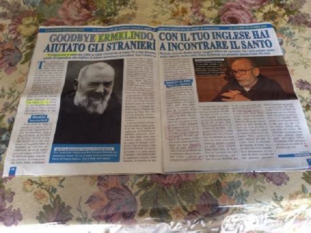 Padre-ErmelindoHa raccontato una volta Padre Ermelindo, qui a San Giovanni rotondo arrivò una troupe della BBC per girare un documentario su di lui. Erano le 5 del mattino e le porte della chiesa erano chiuse. Quando il sacrestano le apri, i fedeli si riversarono dentro la chiesa, per potersi sedere nei posto davanti ed essere il più vicino possibile a padre pio. Chiesi al regista di tagliare quella parte e mi rispose: “padre, questa è la parte migliore del film“. Il regista tornò in occasione del funerale di Padre Pio e mi disse che aveva distribuito il documentario in ogni parte del paese, in modo che tutti potessero guardarlo”. Padre Ermelindo era presente quando Padre Pio morì: «Sapevo che la sua salute era peggiorata ma non immaginavo che morisse la notte tra il 22 e il 23 settembre 1968, perché l’avevo lasciato come le altre sere. Poi, alle 2,30 del mattino fummo informati della sua morte». Dal 1968 Padre Ermelindo è stato l’unico direttore responsabile dell’English Office, incontrando molti pellegrini e diventando un punto di riferimento per tutti.