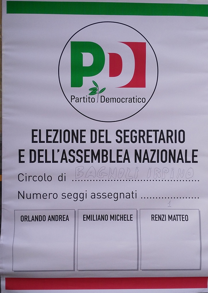 Alle primarie del 2013 a Bagnoli Irpino gli elettori erano stati 130: Renzi voti 87 (67%), Cuperlo voti 23 (18%), Civati voti 19 (15%).