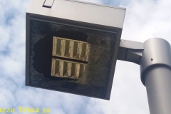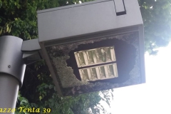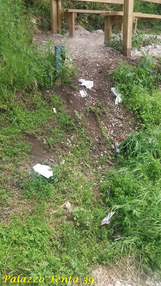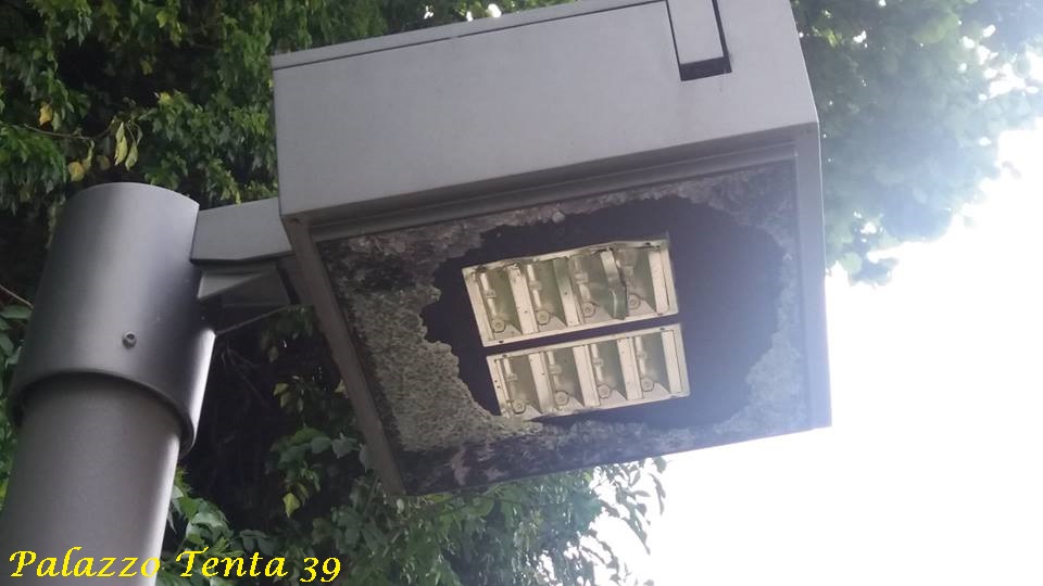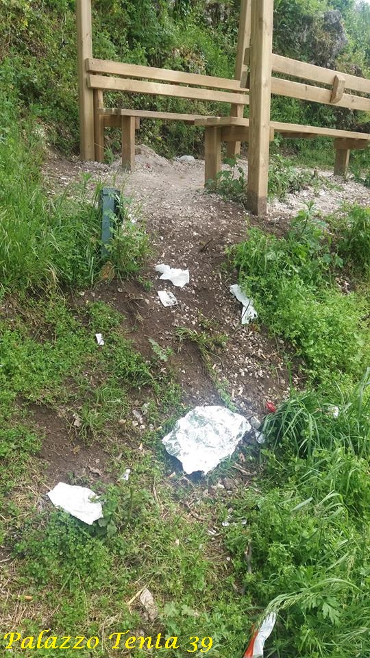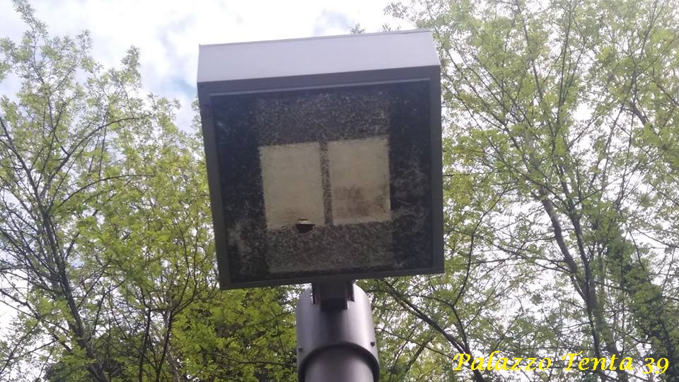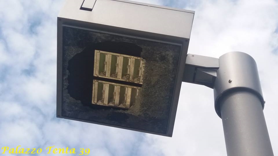 Nel primo pomeriggio di oggi, mi sono recato in detta zona per ammirare il panorama e ho sin da subito notato qualcosa che mi ha lasciato l’amaro in bocca: un po’ dappertutto c’erano mozziconi di sigarette, carte di caramelle, pacchetti di sigarette e qualche foglio d’alluminio (i resti di un pasto). Ma la cosa più assurda è stato constatare che i pali delle luci avevano i vetri in frantumi, così come erano danneggiati molti dei LED che li componevano.