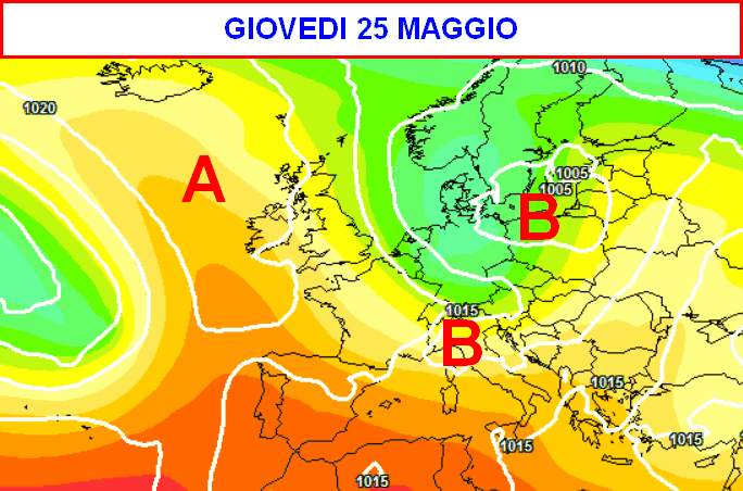 Lo schema appena descritto conferma le nostre ipotesi che vedevano anche l’ultima parte del mese di maggio estremamente variabile.