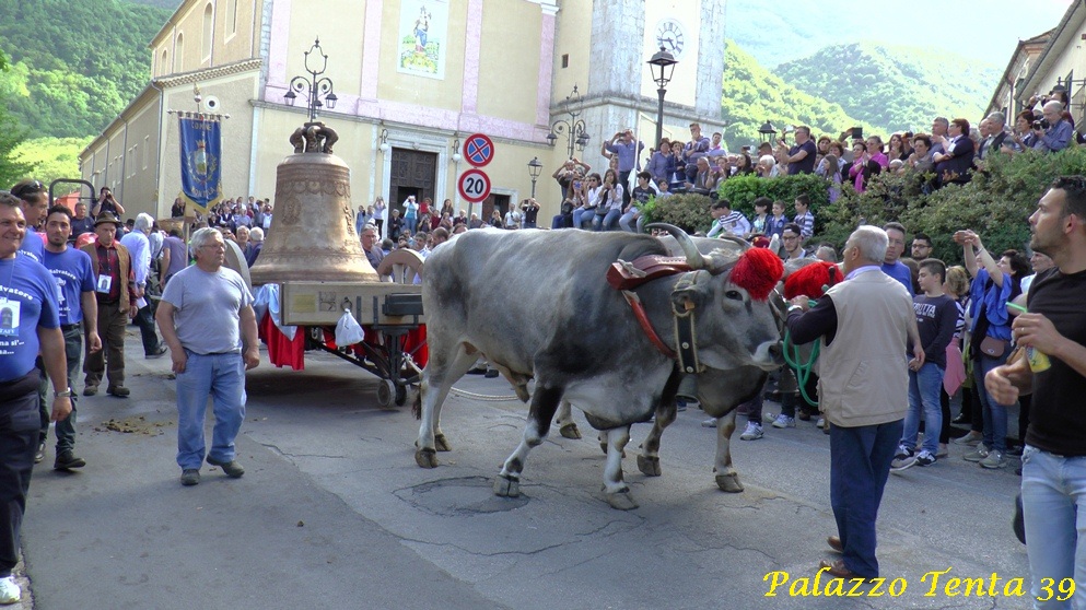 Alle ore 15 dello stesso giorno, dopo la benedizione presieduta da Monsignor Pasquale CASCIO, accompagnata da una folla festosa, la Campana, posta sullo storico “Carrettone di Mirabella” che la popolazione, l’ Amministrazione Comunale ed il Sindaco di quella ridente cittadina hanno voluto concedere vista l’ eccezionalità del caso, trainata da maestosi buoi, ha percorso la strada che porta al Santuario.