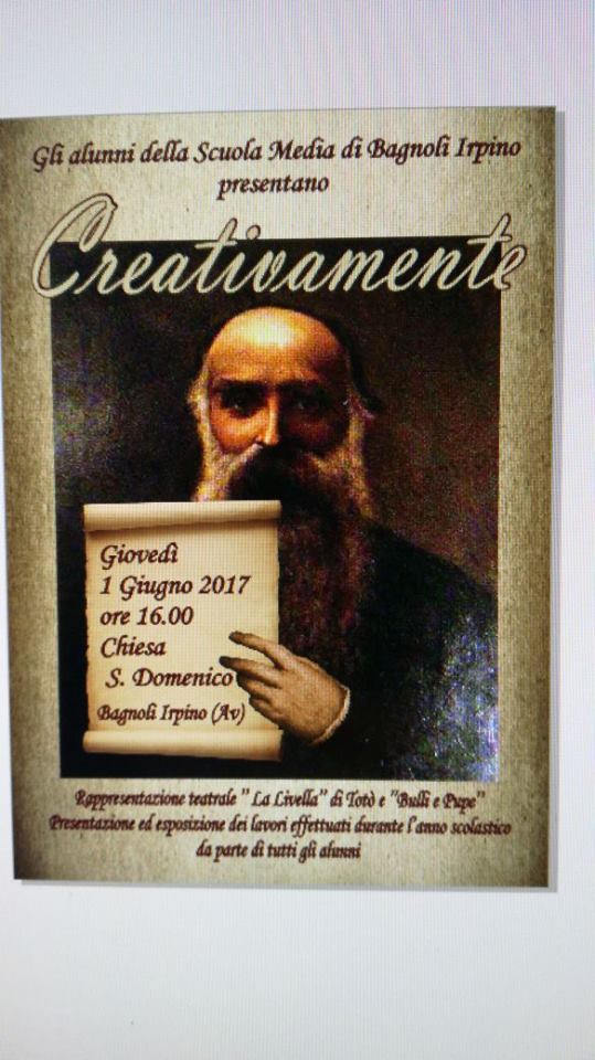 Nel pomeriggio alle ore 16:00, presso il Complesso Monumentale di San Domenico, ci sarà la rappresentazione teatrale “La Livella” di Totò e “Bulli e Pupi”. Al termine la presentazione ed esposizione dei lavori effettuati durante l’anno da parte di tutti gli alunni.