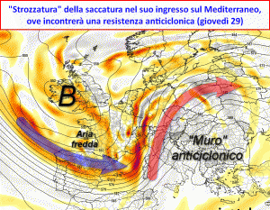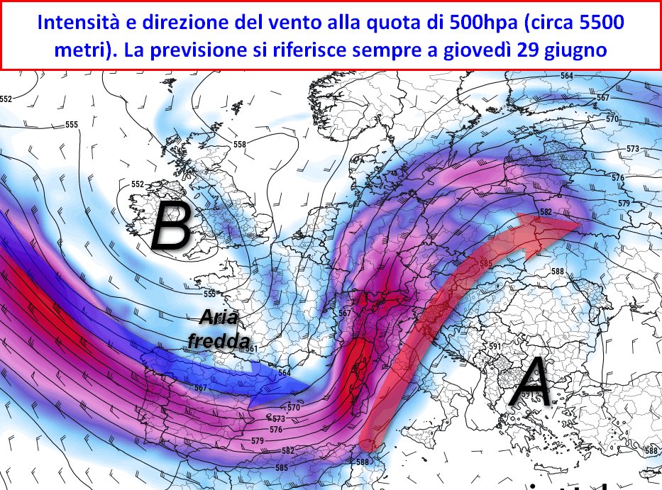 Il nord-Italia invece da domenica 25, e in maniera più decisa da lunedì 26 giugno, entrerà in una fase decisamente più dinamica con l’arrivo di precipitazioni e una sensibile diminuzione delle temperature. Spesse volte, meteorologicamente palando, l’evoluzione classica porterebbe ad immaginare che tale situazione possa portare un veloce peggioramento del tempo anche sulle restanti regioni italiane. Invece questo non succederà.