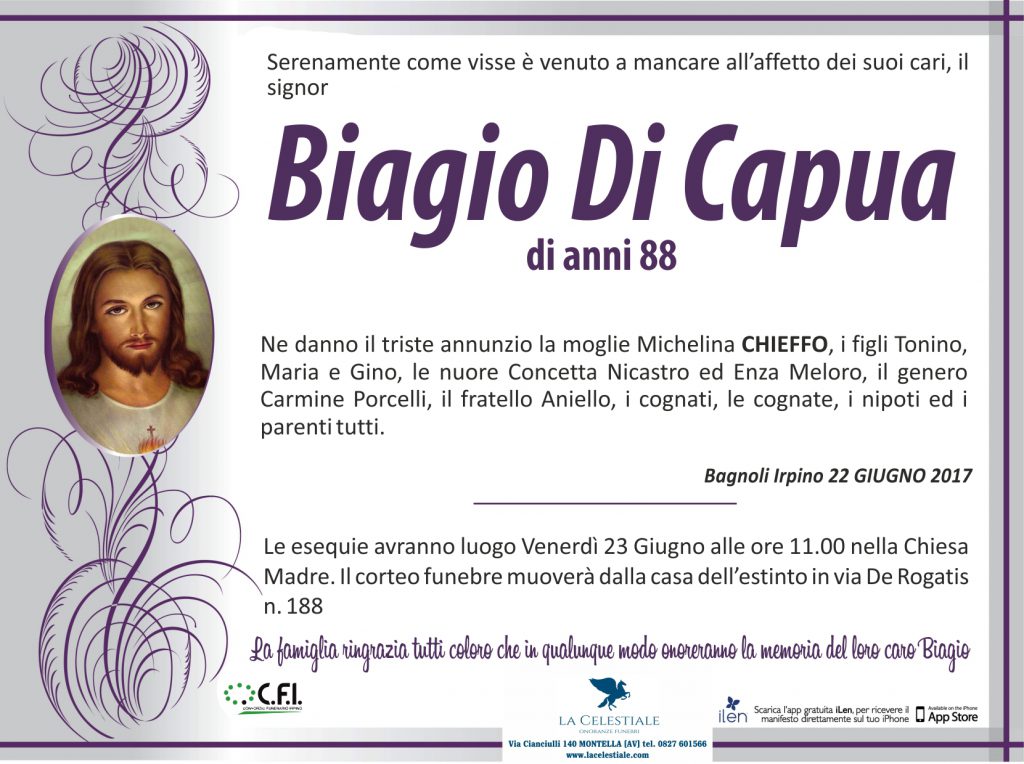 Ne danno il triste annunzio la moglie Michelina Chieffo, i figli Tonino, Maria e Gino, le nuore Concetta Nicastro ed Enza Meloro, il genero Carmine Porcelli, il fratello Aniello, i cognati, le cognate, i nipoti ed i parenti tutti.