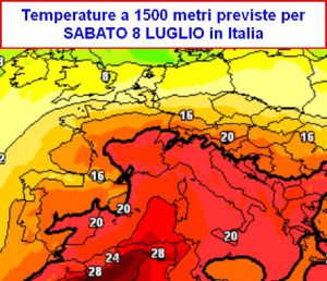 Purtroppo dobbiamo segnalare per il centro-sud un ulteriore incremento del caldo fra lunedì 10 e mercoledì 12 luglio. Addirittura in alcune zone della Sardegna, della Sicilia, della Calabria, della Puglia e della Basilicata orientale le temperature massime potrebbero raggiungere i 41°– 43°. Nello stesso periodo (10-12 luglio) 36°- 39° si toccheranno in diverse zone del centro-sud.