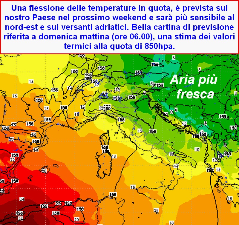Per qualche giorno saremo interessati da correnti fresche nord-occidentali e quindi le temperature tenderanno a diminuire su tutta la penisola.
