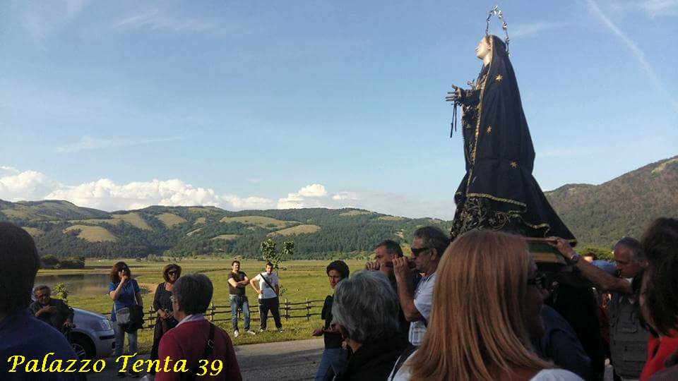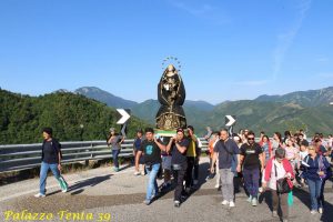 – Questa la so. E parto a spiegare dell’appuntamento per la colazione a la chiazza … cioè in piazza, della processione, della salita da percorrere rigorosamente a piedi, dei sentieri e delle scorciatoie che i ragazzini prendono per arrivare più velocemente in cima, sul’altopiano, per raggiungere il circuito che chiude come una morsa il lago Laceno. Quelli più grandi sanno che le scorciatoie non servono ad arrivare prima. Hanno appreso, con il tempo, che il viaggio è parte della festa e che i sentieri sterrati servono a nascondere le birre la sera prima, per non portarle a spalla e trovarle fredde ad ogni tappa. Come tanti cristi sulla via crucis. Il fine è chiaramente quello di arrivare almeno brilli a la codda r la muledda …. no, non va bene, il colle della Molella, ok. Una volta arrivati non ci si riposa mica.