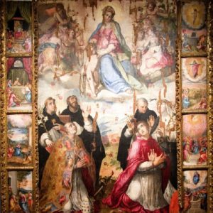 La nostra curiosità non si è soffermata soltanto sullo stato attuale dell’opera ma anche sullo stato in cui versava la pala d’altare quando è stata restaurata e su quali tecniche sono state utilizzate per recuperarla. Nella chiacchierata che né è seguita il restauratore ci ha illustrato le varie fasi di restauro. In una prima fase si è proceduto al consolidamento della pala d’altare facendo riaderire la pellicola pittorica. La fase di consolidamento è durata circa un mese dopo di che si è provveduto ad una cauta pulitura della superfice pittorica per poi passare ad integrare con restauro imitativo le parti mancanti. Le lacune più piccole sono state chiuse con restauro imitativo, mentre quelle più marcate con l’integrazione a neutro, un metodo che consente di avvicinarsi il più possibile al colore e al disegno originali pur mantenendo visibile il restauro. In quello stesso periodo un’altra ditta di restauri, ripristinò tutto il portale che racchiude la pala. Fu decisa l’attuale collocazione perché mancavano i fondi per risistemare l’altare e perché l’interno della chiesa, all’epoca, non presentava le macchie d’umidità che oggi invece sono visibili. Fortunatamente per ora il “nostro” Marco Pino da Siena gode di buona salute, l’associazione continuerà a vigilare nella speranza di vedere la chiesa di San Domenico finalmente restaurata e la pala d’altare ricollocata nella sua sede originale.