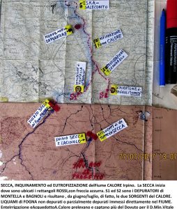 E’ inutile dire che il colore delle acque fino a San FRANCESCO e oltre a salire per La LAVINELLA, fino a BARUSO, è GRIGIO SCURO-MARRONE ed il FETORE è rilevato dalle cellule olfattive nasali in maniera tale da innescare reazioni neurovegetative e rischi di malattie polmonari e delle vie respiratorie superiori. Sussistono tutti i motivi di ribadire l’esigenza della dichiarazione di STATO di CALAMITA’ NATURALE IDRICA e IGIENICO SANITARIA.