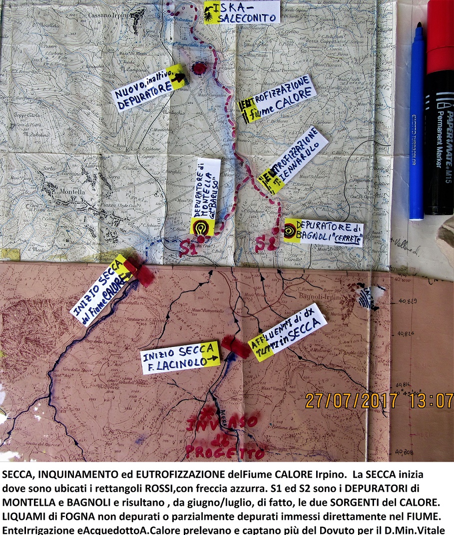 EUTROFIZZAZIONE del Torrente IENNARULO proveniente dalDEPURATORE di BAGNOLI nei pressi del Ponte di SAN FRANCESCO e del fiume CALORE intorno al Ponte della CARPENETA