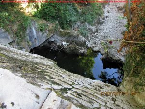 Stamane la CASCATA è TOTALMENTE SECCA, solo blocchi calcarei squadrati secolari ricoperti, a chiazze, di muschio e/o di una patina di travertino e muschio assieme. “Rint’ ‘a l’URIO mantene l’acqua, comunque in fase di graduale infiltrazione/evaporazione.