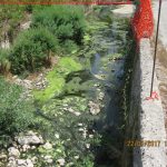 e a valle del Ponte della CARPENETA ( Invito a visitare il sito almeno dal PONTE): Indescrivibile la SCENA e lo schifo che proietta il viscidume verdasto che si differenzia dal VERDE delle piante e dei prati al contorno. (Vedi foto in seguito)