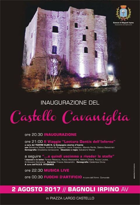 E’ una grande serata per l’Irpinia e per il comune di Bagnoli Irpino quella che si prospetta per oggi 2 agosto. Dopo secoli di incurie e vandalismo ritorna fruibile al pubblico il Castello Cavaniglia. Questo gioiello medievale, vanto e orgoglio della comunità bagnolese, si ripresenta come tassello chiave per lo sviluppo turistico del Laceno e dell’Irpinia.
