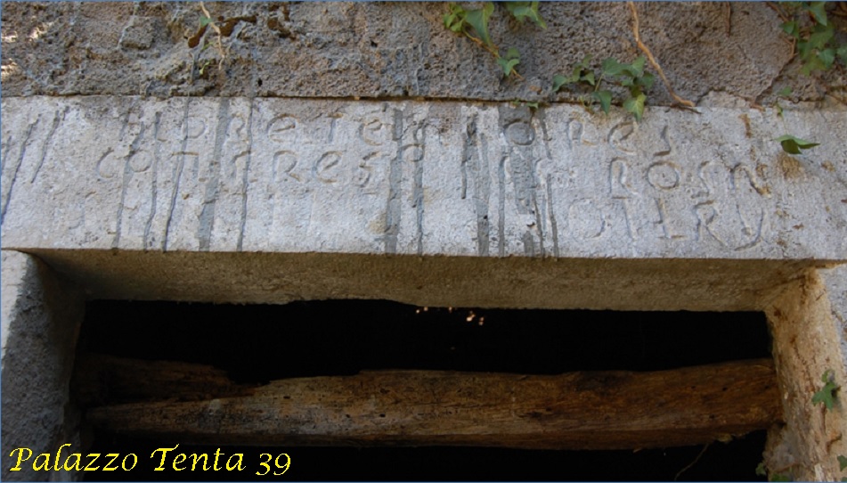 L’autunno scorso ero impegnato con il gruppo speleo “G. Rama” nella pulizia del chiostro di San Domenico, sommerso da una foresta verde che ormai lo ricopriva interamente; ad un certo punto dei lavori avevo raggiunto la sommità di un cumulo di pietre, quasi all’altezza dell’architrave della stanza centrale, posta sul lato nord del chiostro (per intenderci quella dal lato di via Michele Lenzi). Rimosso l’ultimo pezzo dell’intrigo di rovi e di sambuco che ricopriva la parte alta dell’accesso, mi sono trovato di fronte la scritta di seguito riportata (Fig. 1). La cosa mi ha colto di sorpresa e sono rimasto parecchio tempo non solo a cercare di ricordare la scritta, ma anche di capirne il significato.