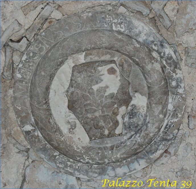 Figura 2 – rosone centrale presente su tutte le volte delle stanze che si affacciano sul chiostro; su questo fotografato esplicito il riferimento ad Ambrogio Salvio