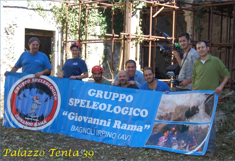 Figura 7 – Il Gruppo Speleo G. Rama a fine lavori. Alle mie spalle il portale con la scritta.