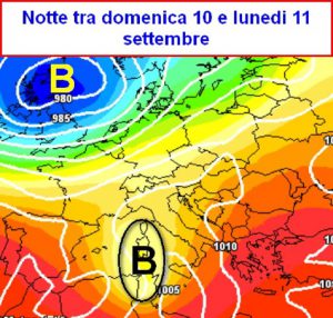 L’alta pressione tenterà di riconquistare la nostra penisola riuscendoci solo in parte, e specificamente al sud-Italia. Da giovedì 14 settembre un nuovo affondo depressionario si porterà sul mediterraneo occidentale e con le sue correnti sud-occidentali porterà una nuova fase di maltempo sulle regioni settentrionali.