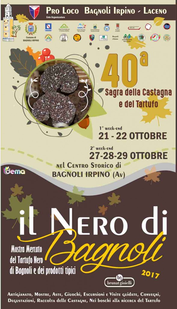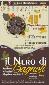 E’ giunta alla sua 40° edizione la manifestazione “Il nero di Bagnoli– Mostra Mercato del Tartufo Nero di Bagnoli e dei prodotti tipici”, che quest’anno si svolgerà nei week-end 21/22 e 27/28/29 Ottobre a Bagnoli Irpino in provincia di Avellino.