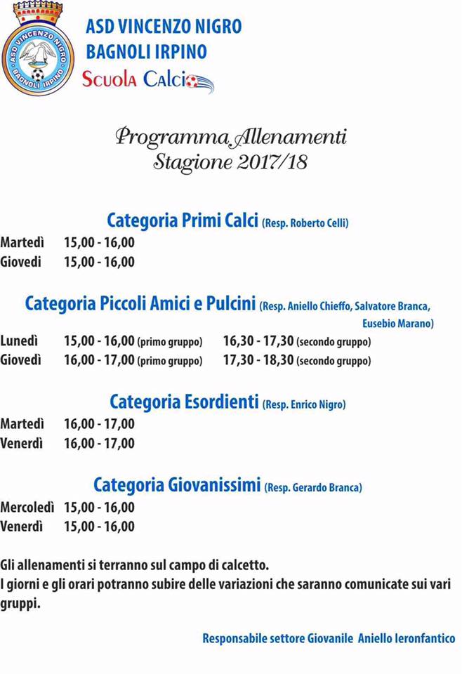 Auguriamo a tutti i ragazzi iscritti un buon anno di scuola calcio targato come sempre Asd Vincenzo Nigro Bagnoli.