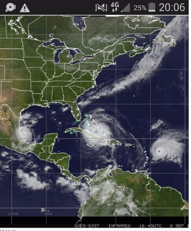 Immagine del satellite che mostra tre uragani contemporanei nell’area dei caraibi.
