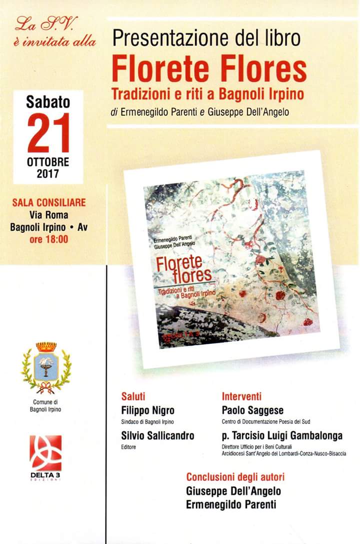 È in uscita “Florete flores, tradizioni e riti a Bagnoli Irpino” il libro scritto da Ermenegildo Parenti. e Giuseppe Dell’Angelo. La presentazione di questa nuova pubblicazione avverrà sabato 21 ottobre alle ore 18:00 presso la Sala Consiliare, in Via Roma a Bagnoli Irpino.