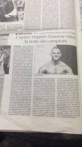 Aveva addirittura annunciato di volere rinunciare all’Arnold Classic di Barcellona, dopo la qualificazione raggiunta al Campionato Italiano Ifbb e invece in poche settimane rilancia la sfida e conquista il primo posto Alla Notte dei Campioni Ifbb di Roma. È la conclusione della stagione agonistica 2017 di Virginio Granese, campione mondiale di body building 2013 e vice campione mondiale 2017, nonché primo classificato alla Notte dei Campioni per la categoria Classic +1,80 cm, che ha incassato a Roma un successo senza precedenti, e ha ottenuto la qualifica per l’Arnold Classic in Brasile del 2018. In soli cinque mesi, l’atleta irpino ha affrontato ben sette competizioni, conquistando il titolo di vice campione mondiale disputato in Spagna, e tante medaglie d’argento, fino alla vittoria di ottobre.