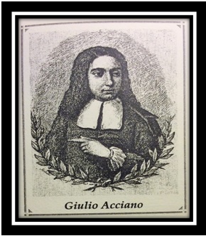 I suoi versi, pubblicati nel volume “Poesia del Seicento” del fondamentale Parnaso Italiano sono ripresi anche in un’importante e gradevolissima antologia edita da Einaudi: così per gioco. Sette secoli di poesia giocosa, parodia e satirica, a cura di Guido Davico Bonomo, che presenta con note decisamente positive questo brillante poeta irpino: “Traferitosi come giovane avvocato a Napoli (doveva morirvi trentenne nel 1681), Acciano non tardò a sfogare la sua stizza contro le angustie del paesello: i suoi undici capitoli in rima, che circolarono manoscritti, piacquero molto nell’ambiente letterario, e gli valsero, meritatamente, la fama di promettente poeta satirico”.