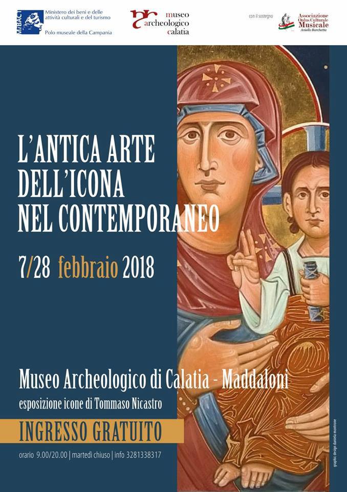 “L’antica arte dell’icona nel contemporaneo” è il titolo della mostra pittorica di arte sacra allestita dall’artista, di origini bagnolesi, Tommaso Nicastro, presso il museo archeologico di Calatia nel comune di Maddaloni (Caserta).