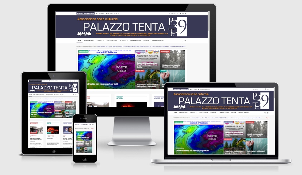 Il sito web di Palazzo Tenta 39 cambia nuovamente look. È la terza versione in poco più di 10 anni di attività. Il restyling del portale è di buon livello, gradevole l’impatto visivo, professionale la grafica, moderna l’intera struttura, peraltro similare a quella adottata dai principali network di informazione provinciale e nazionale. Molto intuitiva la navigazione. La piattaforma tecnica di riferimento si conferma la WordPress, così come le macro categorie prescelte restano pressocchè le stesse di quelle già adottate nella precedente versione.